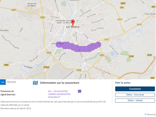 Comme l’a signalé Muzikals sur Twitter, la 4G+ Free Mobile a commencé à faire son apparition sur la ville du Mans. Vous pouvez dès à présent aider à compléter cette carte grâce à l’application de notre partenaire Sensorly.