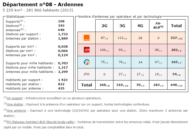Univers Freebox vous propose, via le site Couverture Mobile, un tableau comparatif du nombre d’antennes déployées dans les Ardennes, par les différents opérateurs.