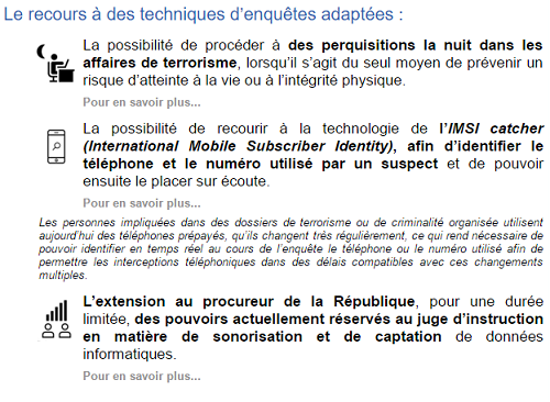 Les IMSI-catcher tels que présentés sur le site officiel du ministère de la Justice.