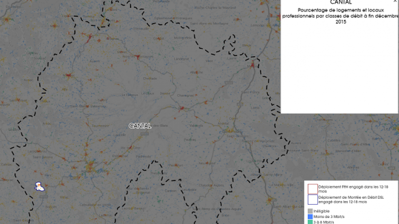 Seul un déploiement est actuellement engagé dans le département du Cantal. Ce déploiement concerne uniquement une montée du débit DSL.