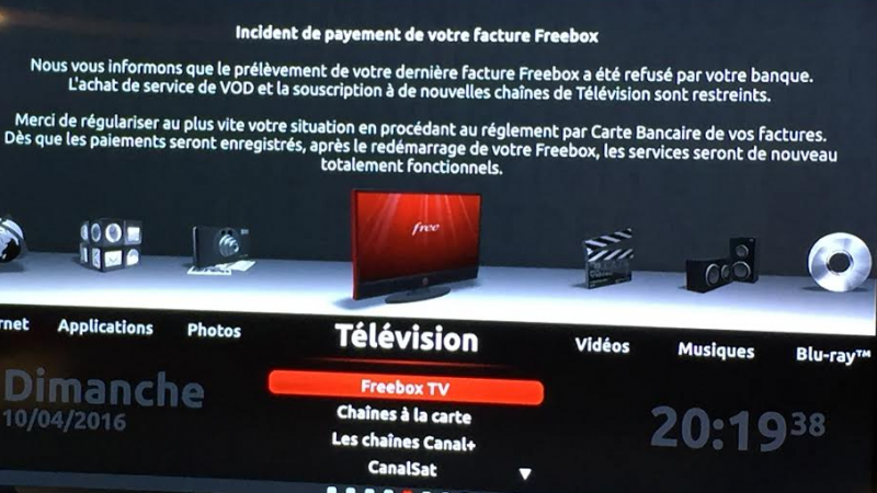 Free informe maintenant des défauts de paiement sur le téléviseur et annonce la restriction de service