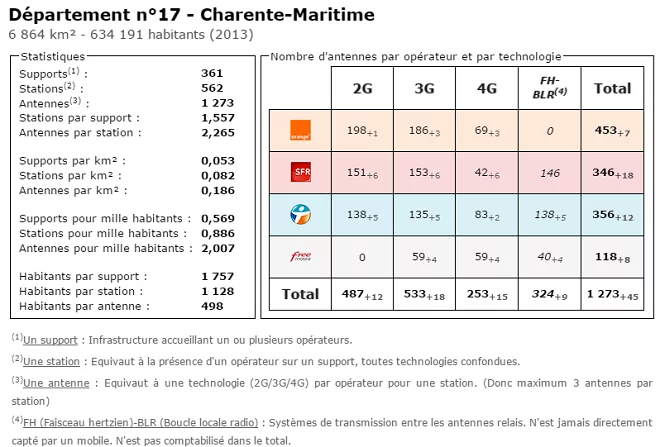 Univers Freebox vous propose, via le site Couverture Mobile, un tableau comparatif du nombre d’antennes déployées dans la Charente-Maritime, par les différents opérateurs.