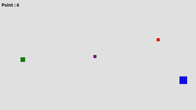 Nous commencerons dans un premier temps par déclarer nos variables. Nous aurons besoin cette fois-ci d’un certain nombre d’entre elles. Il nous faudra donc deux entiers pour gérer le déplacement en X et en Y, un entier pour gérer les points et deux qui nous serviront d’index pour se déplacer dans des tableaux. Nous aurons ensuite besoin de 4 booléens qui serviront à savoir si nous somme dans un des carrés. Pour finir, nous aurons besoin de 4 tableaux, un qui contiendra les id de chaque carré, un qui contiendra les points gagnés pour chacun d’eux, un qui permettra de définir le sens de déplacement à partir de booléen et un dernier pour leur vitesse de déplacement.