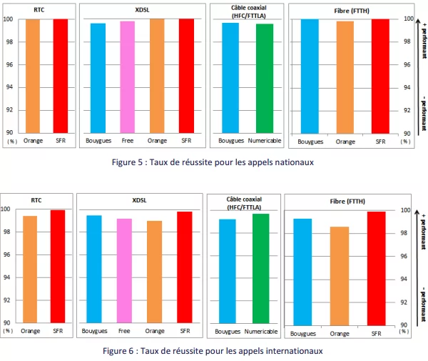 Cet indicateur traduit la probabilité pour un appelant de voir son appel aboutir, et donc de ne pas avoir d’appel défaillant. Un appel défaillant est un appel dont le résultat n’est pas conforme à ce qui est attendu soit parce qu’il n’aboutit pas, soit parce que la communication est interrompue avant la durée prévue. Cela peut se traduire notamment par un temps de décroché anormalement long (>35s), l’accès à un message d’erreur, une indisponibilité de tonalité, une interruption de communication.