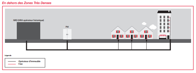 Le groupe Iliad a été dans ce cadre le premier opérateur à souscrire, en août 2012, à l’offre de l’Opérateur historique d’accès aux lignes FTTH en dehors de la Zone Très Dense et à s’engager à cofinancer certaines des agglomérations proposées par l’Opérateur historique. Cette offre permet à chaque opérateur d’acquérir et donc de cofinancer le déploiement à hauteur de la part de marché locale souhaitée. Cette mise en commun des moyens permet de déployer un réseau unique et mutualiser entre les répartiteurs optiques et les abonnés, et de desservir ainsi une population plus large.
