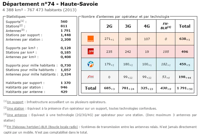 Univers Freebox vous propose, via le site Couverture Mobile, un tableau comparatif du nombre d’antennes déployées dans la Haute-Savoie, par les différents opérateurs.