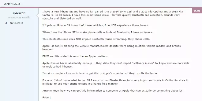 Depuis plusieurs jours, les acquéreurs de l’iPhone SE se plaignent de la mauvaise qualité des appels en Bluetooth. Son sursaturé et coupures sur les appareils tournant sur iOS 9.3 ou 9.3.1. Certains ont même dû renvoyer leur smartphone au service-clients.