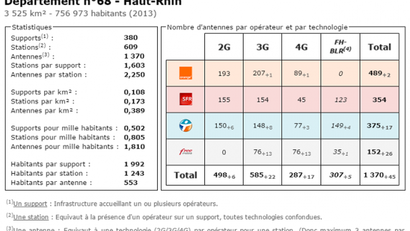 Univers Freebox vous propose, via le site Couverture Mobile, un tableau comparatif du nombre d’antennes déployées dans le Haut-Rhin, par les différents opérateurs.