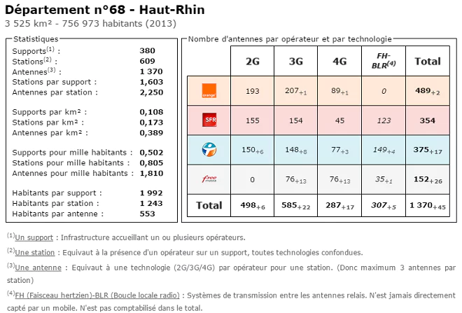 Univers Freebox vous propose, via le site Couverture Mobile, un tableau comparatif du nombre d’antennes déployées dans le Haut-Rhin, par les différents opérateurs.