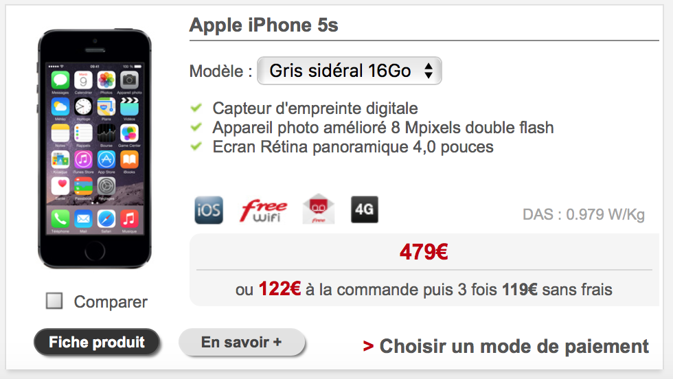Alors qu’Apple ne commercialise plus l’iPhone 5S, Free Mobile le propose toujours dans sa boutique en ligne en version 16 GO.