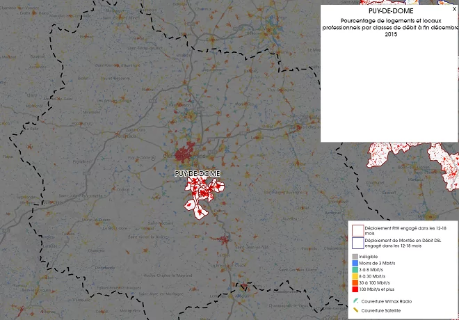 Plusieurs déploiements sont actuellement engagés dans les 12-18 mois pour le département du Puy-de-Dôme. Tous ces déploiements concernent un déploiement de la fibre FTTH.