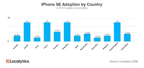Forbes explique que ce sont « les pays avec les marchés les plus compétitifs et ouverts qui adoptent en plus grands nombres l’iPhone compact ». Le média économique est arrivé à ces conclusions via l’analyse effectuée par Localytics, qui a révélé dans une étude que le smartphone d’Apple s’était particulièrement bien vendu en Europe (France et Royaume Uni) mais aussi au Canada et à Hong Kong.