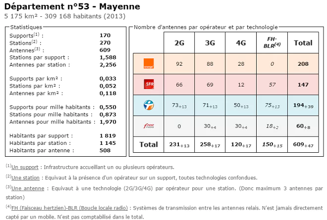 Univers Freebox vous propose, via le site Couverture Mobile, un tableau comparatif du nombre d’antennes déployées dans la Mayenne, par les différents opérateurs.