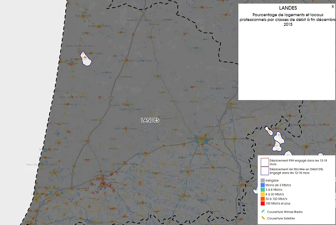 Seul un déploiement est actuellement engagé pour le départements des Landes dans les 12-18 mois. Ce déploiement concerne une montée du débit DSL.