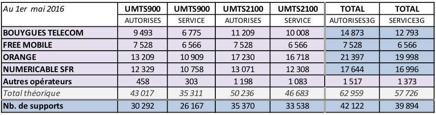 L’ANFR vient de publier les chiffres de déploiement des réseaux mobiles au 1er mai 2016. A cette date, 25 236 sites sont autorisés, dont 21 992 en service, pour la téléphonie mobile très haut débit (4G) tous opérateurs confondus.
