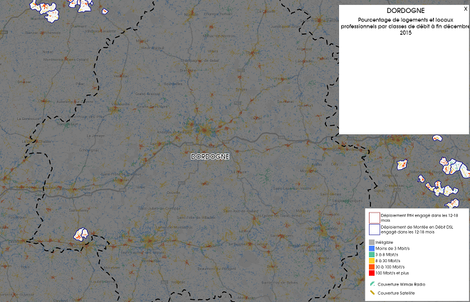 Deux déploiements sont actuellement engagés dans le département de la Dordogne dans les 12-18 mois. Ces deux déploiement concernent une montée du débit DSL.