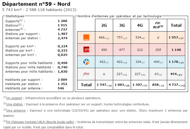 Univers Freebox vous propose, via le site Couverture Mobile, un tableau comparatif du nombre d’antennes déployées dans le Nord, par les différents opérateurs.