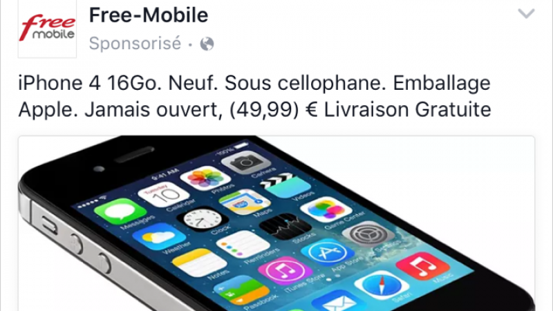 Non, Free Mobile ne propose pas un iPhone à 49,99€ sur Facebook