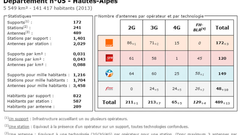 Comparatif du nombre d’antennes dans les Hautes Alpes chez Free, Orange, Bouygues et SFR