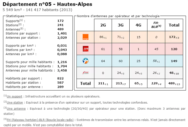 Univers Freebox vous propose, via le site Couverture Mobile, un tableau comparatif du nombre d’antennes déployées dans les Hautes-Alpes, par les différents opérateurs.