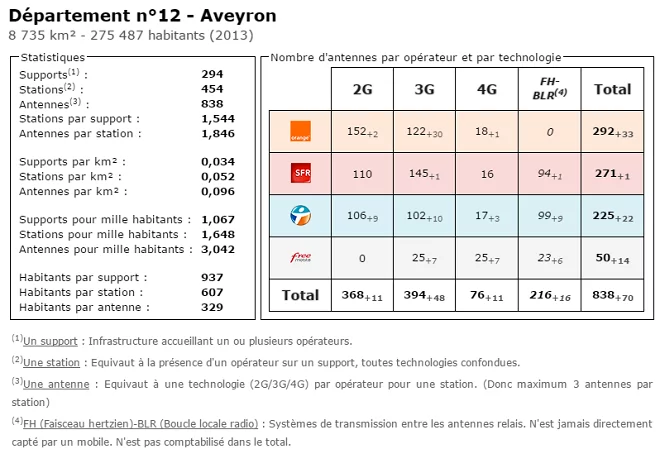 Univers Freebox vous propose, via le site Couverture Mobile, un tableau comparatif du nombre d’antennes déployées dans l’Aveyron, par les différents opérateurs.