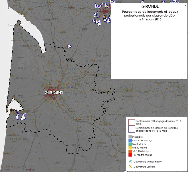 Plusieurs déploiements sont actuellement engagés dans le sud-ouest de la Gironde dans les 12-18 mois. Ces déploiements concernent tous une montée du débit DSL.