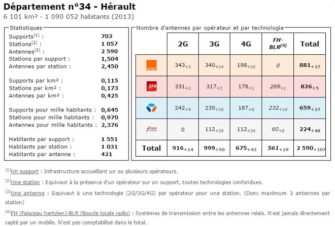 Univers Freebox vous propose, via le site Couverture Mobile, un tableau comparatif du nombre d’antennes déployées dans l’Hérault, par les différents opérateurs.