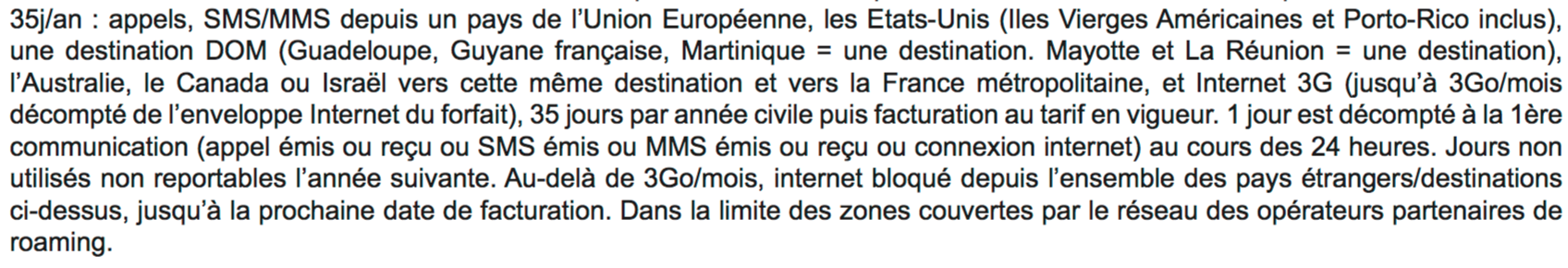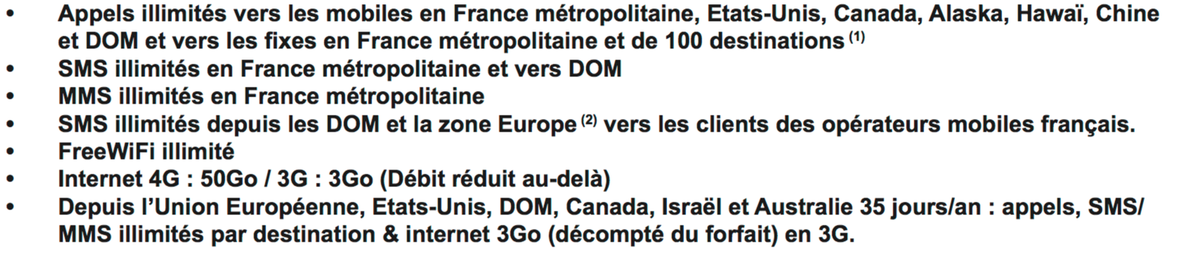 Mais une nouveauté est apparue pour le forfait illimité. Une nouveauté qui aurait pu passer inaperçue mais que nous avons trouvé en analysant le détails du roaming inclus. Free Mobile indique bien dans sa Brochure Tarifaire que le forfait illimité dispose de 35 jours par an de roaming depuis L’Union Européenne, les Etats-Unis, les DOM, le Canada, Israel, et l’Australie.