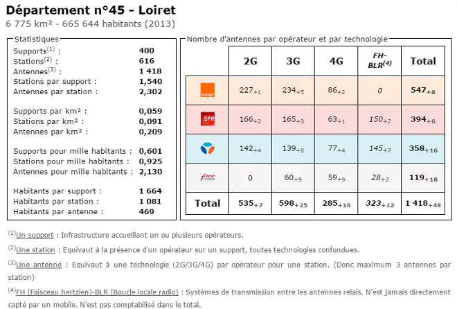 Univers Freebox vous propose, via le site Couverture Mobile, un tableau comparatif du nombre d’antennes déployées dans le Loiret, par les différents opérateurs.