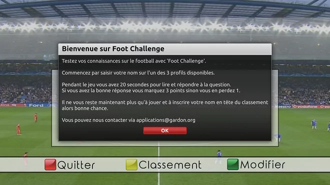 Foot Challenge est un quizz payant spécial football disponible sur Freebox Révolution et développé par Gardon.org Apps.