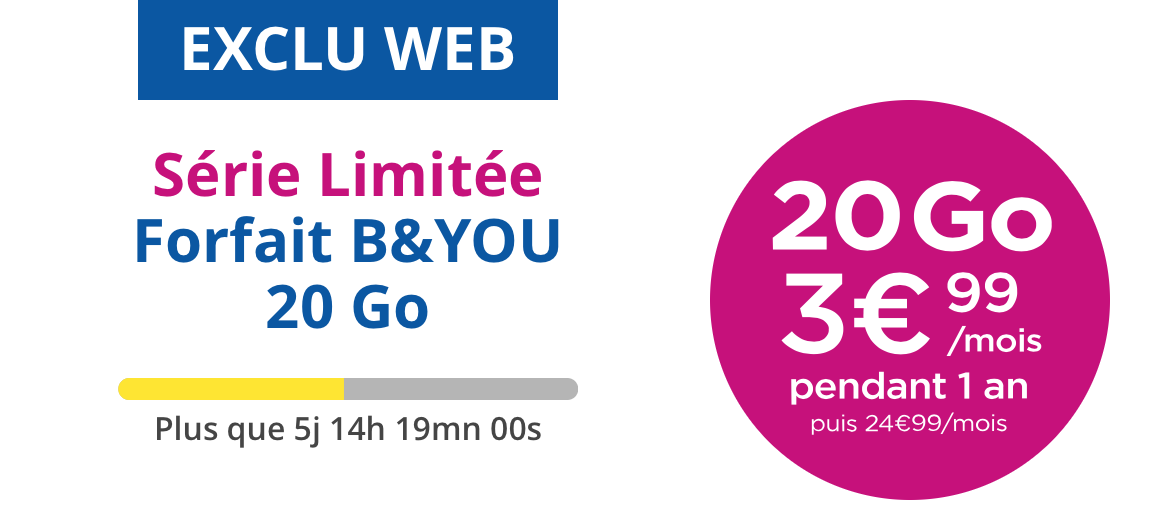 Pour contrer cette Vente Privée ; Bouygues Télécom avait dégainé le soir même une offre B&You 20 Go à 3,99€ par mois pendant un an, au lieu de 24,99€. Une offre qui devait prendre fin hier soir. Bouygues Télécom a donc prolongé cette offre jusqu’au 27 juin.