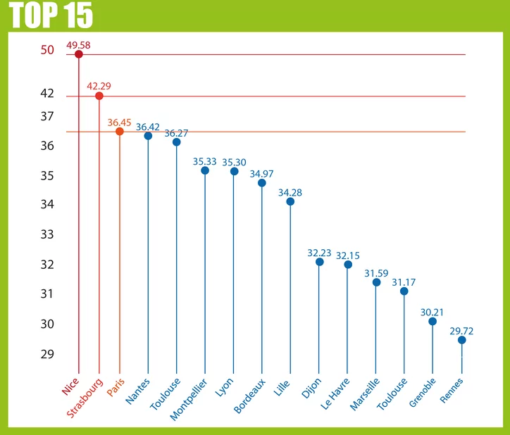 L’application nPerf, qui teste la qualité des connexions fixes et mobiles, a recueilli plus de deux millions de tests mobiles en France en 2015. Grâce aux données mobiles récoltées sur l’année 2015, nPerf a pu élaborer un classement des villes de plus de 150 000 habitants : Angers, Bordeaux, Dijon, Grenoble, Le Havre, Lille, Lyon, Marseille, Montpellier, Nantes, Nice, Paris, Reims, Rennes, Saint-Étienne, Strasbourg, Toulon et Toulouse.