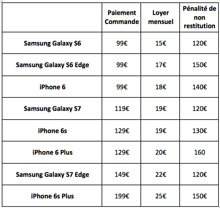 Pour pouvoir louer un mobile, tout d’abord il faut disposer d’un forfait illimité. Il faudra payer un apport de départ à la commande puis ensuite un loyer mensuel sur 24 mois minimum car la formule est soumise à l’engagement de 24 mois (le forfait lui reste sans engagement).