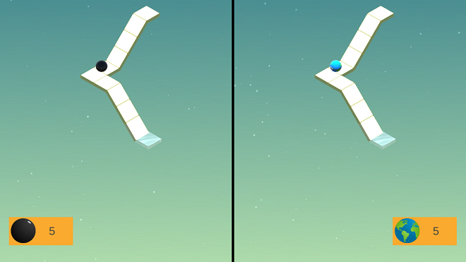 Avec cette dernière, vous devrez avancer le plus loin possible. Pour ce faire rien de plus simple, la balle avancera toute seule, il vous suffira ensuite d’appuyer sur la touche ok de votre télécommande pour la faire changer de direction. La difficulté viendra du chemin qui apparaîtra au fur et à mesure de votre progression, ce qui fera travailler vos réflexes, car il sera difficile d’anticiper ce qui peut arriver devant vous. Avant chaque partie, le jeu vous indiquera le score de la personne juste au-dessus de vous dans le classement pour ainsi tenter de le battre.