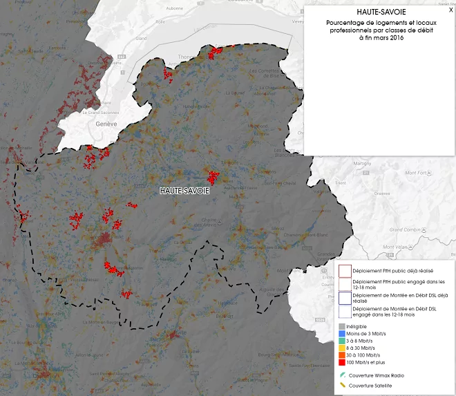 Grâce aux données fournis par l’Observatoire Très Haut Débit, Univers Freebox vous propose de découvrir la carte des déploiements engagés pour le très haut débit sur le département de le Haute-Savoie.