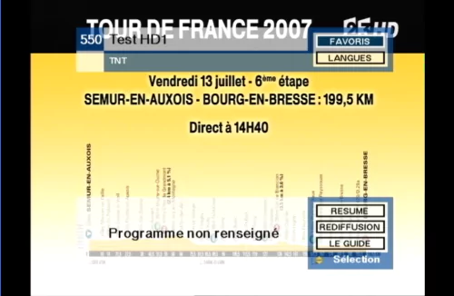 La TNT HD est (toujours) en expérimentation et à disposition dans les agglomérations de Paris, Lyon et Marseille. Redémarrez donc vos Freebox HD pour pouvoir bénéficier notamment du Tour de France qui est diffusé actuellement en Haute Définition sur la TNT sur Test HD1 (canal 550) et Test HD2 (551).