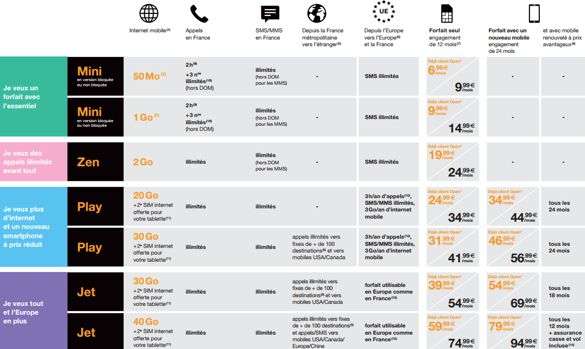 A compter de demain, Orange va proposer sa gamme de forfaits mobiles avec beaucoup plus de data. Toutefois, les forfaits d’entrée de gamme ne sont pas concernés par cette augmentation, c’est-à-dire les forfaits Mini à 50Mo et 1Go ainsi que le forfait Zen à 2Go.