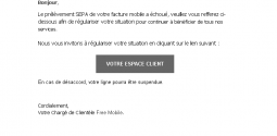Free Mobile : nouvelle attaque Phishing, faisant état du prélèvement SEPA qui aurait échoué