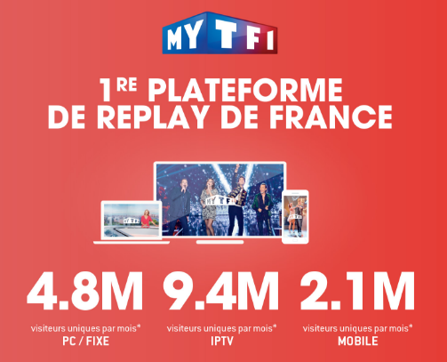 MYTF1 annonce être la 1ère plateforme de replay de France, la majorité des utilisateurs provenant des box
