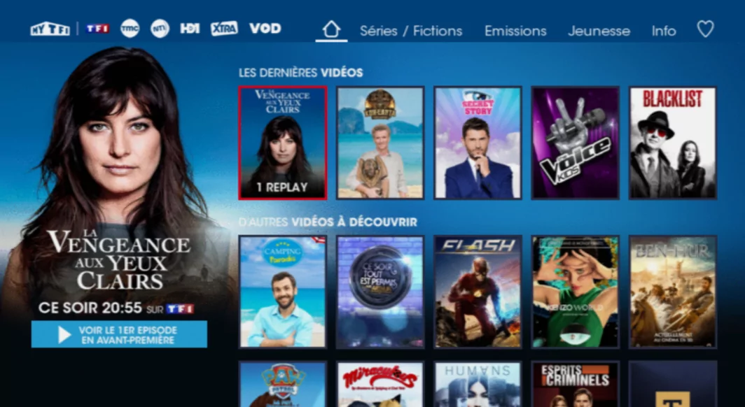 A noter que MYTF1, qui est disponible gratuitement sur la Freebox, intègre non seulement les programmes de TF1 en replay, mais également ceux de TMC, NT1 et de HD1.