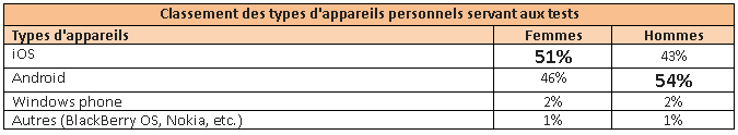Les femmes sont plus dures lors des tests et des notations attribuées aux applications ou sites mobiles. Ainsi, leur note moyenne est de 3,66 contre 3,71 pour les hommes.