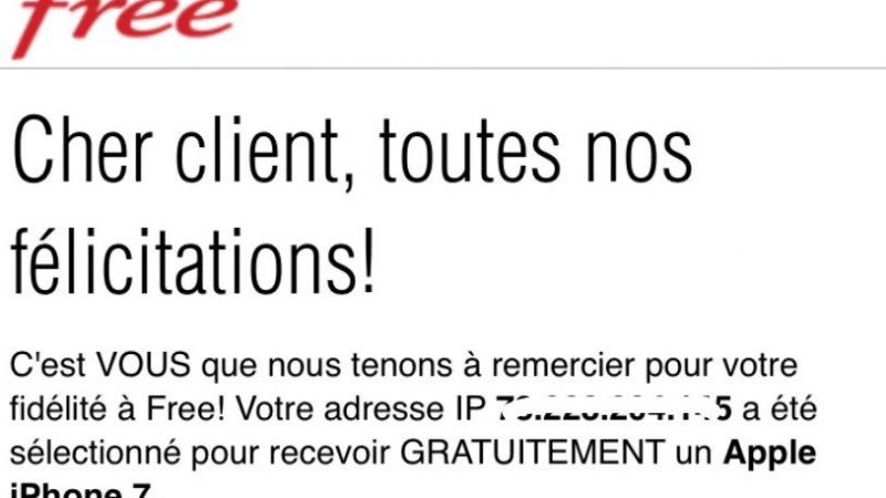 Nouveau phishing en cours : Free tirerait au sort des abonnés pour offrir un iPhone 7