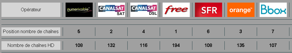 - Numéricable avec 108 chaînes HD