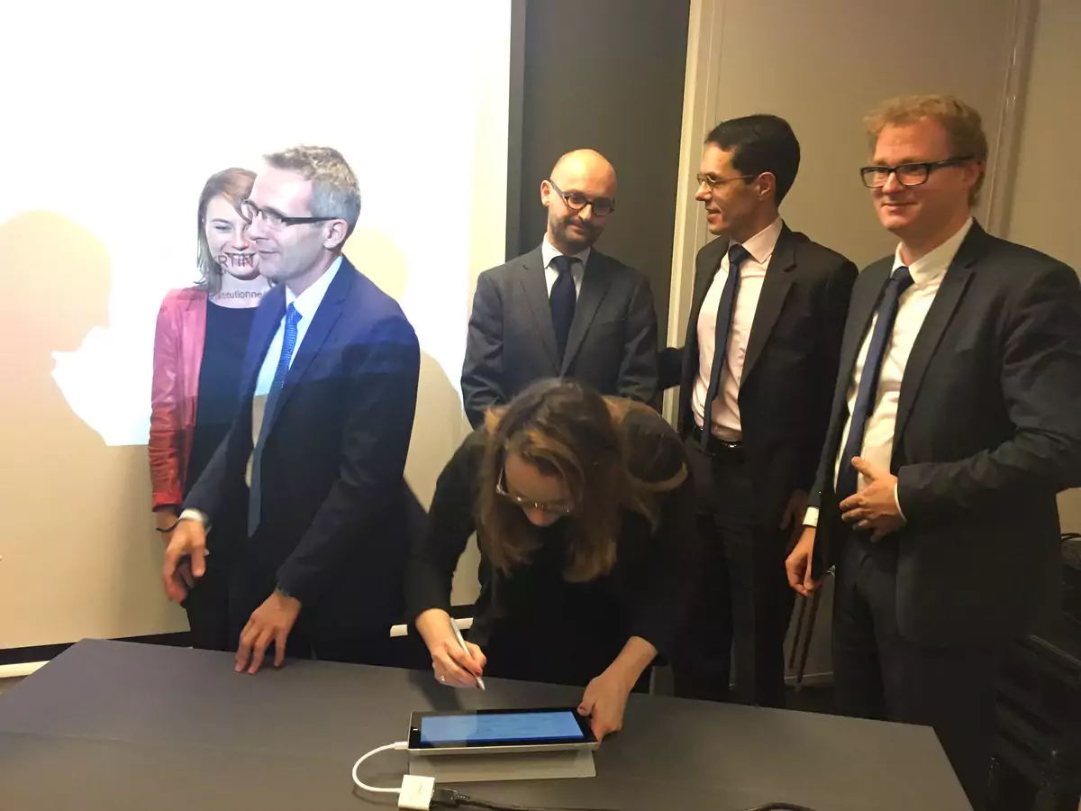 La signature de la convention par Orange, SFR, Bouygues Télécom, Free et les autres acteurs partenaires, a eu lieu dans les locaux de Salvia Développement à Aubervilliers en Seine Saint-Denis, entreprise numérique engagée pour la formation des bénéficiaires du RSA, en présence d’Axelle Lemaire, la secrétaire d’Etat chargée du Numérique et de l’Innovation, qui avait invité la presse à cette occasion. Celle-ci a tenu à remercier les opérateurs et la FFTelecoms en indiquant : " je le prends comme un symbole pour avancer ensemble "