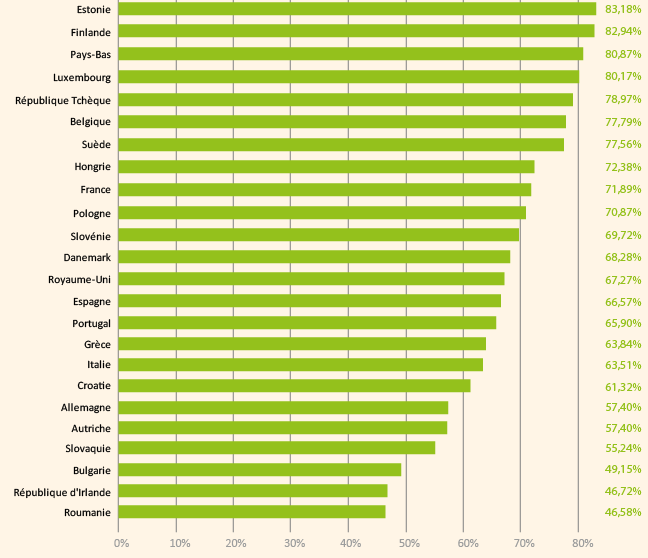 La France est bien placée parmi les cinq plus importants marchés européens en neuvième position avec une moyenne de taux de connexion 4G de 71,89%. Le Royaume-Uni suit avec 67,27%, puis l’Espagne avec 66,57%, l’Italie avec 63,51% et enfin l’Allemagne avec seulement 57,40%.