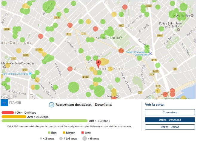 Avec les données de notre partenaire Sensorly, Univers Freebox vous propose un focus sur Asnières-sur-Seine, 50ème ville de France par sa population et vous fait découvrir la carte de la couverture du réseau 4G et des débits.