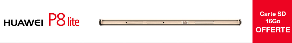 Une nouvelle offre « accessoire offert » sur le Huawei P8 lite : Du 8 au 22 Décembre, la carte micro SD 16Go est offerte.