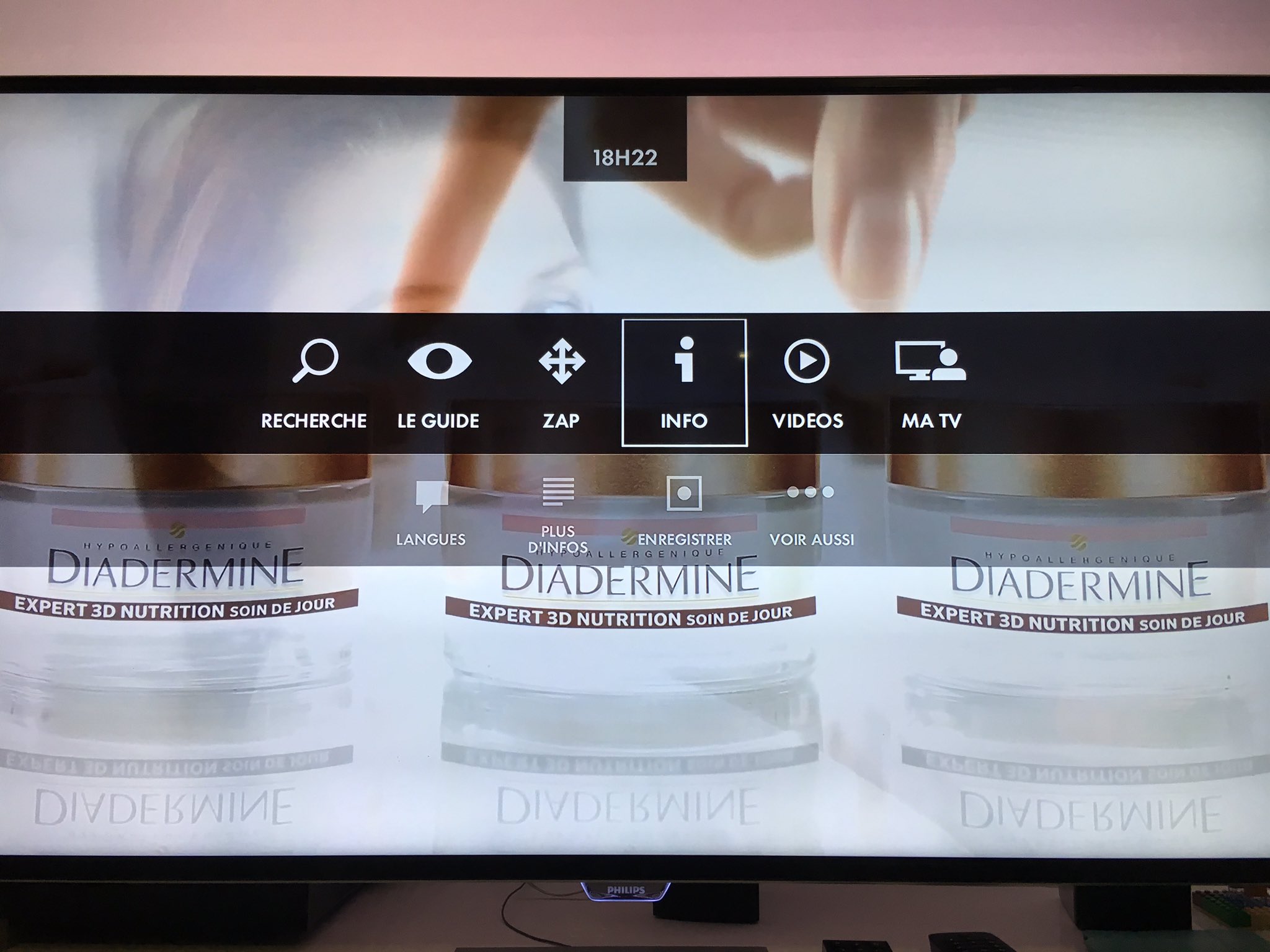 Accédez à la fiche complète du programme en cours (durée, auteur, acteurs, résumé, langues,…), aux programmes diffusés avant et après celui en cours et aussi la possibilité d’enregistrer un programme à venir, à l’exception des chaînes reçues via Internet signalées par le symbole