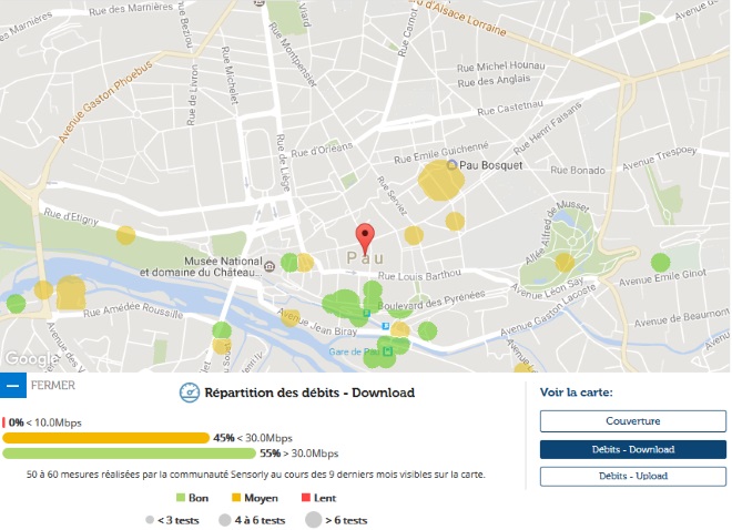Avec les données de notre partenaire Sensorly, Univers Freebox vous propose un focus sur Pau, 59ème ville de France par sa population et vous fait découvrir la carte de la couverture du réseau 4G et des débits.