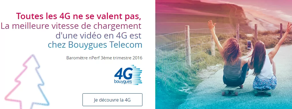 C’est également le cas de Bouygues Télécom qui, sur son site web ou dans ses publicités TV sur la 4G, annonce qu’il dispose de la meilleure vitesse de chargement de vidéos en 4G. Il se base pour cela sur le baromètre nPerf du 3ème trimestre.